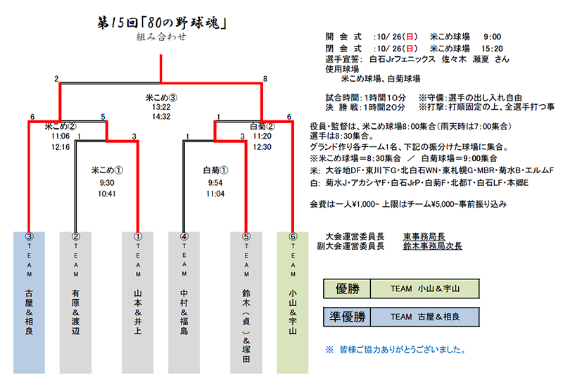 決勝戦ではTEAM小山&宇山が打線爆発。見事8―2で勝利を収め、2025年度の「80の野球魂」を制した。