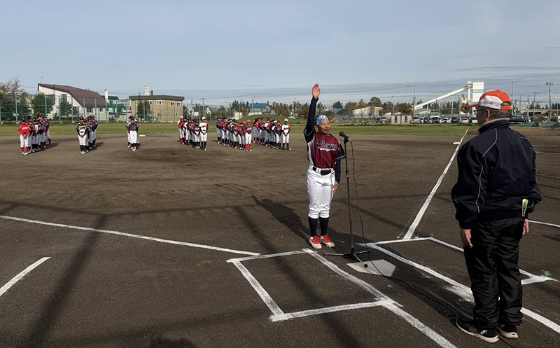 白石区少年野球連盟に所属する6年生80人がチームの垣根を越えて一堂に集結。